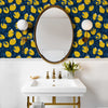 We say when life gives you lemons, make a stylish lemon print wallpaper! The vibrant citrus yellow lemons are captivating on this midnight blue backdrop. Our luscious lemon print design stuns in a kitchen or dining area.