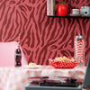Our Good Vibrations zebra wallpaper brings infectious energy to any home interior. This abstract striped wallpaper pattern takes on a bohemian twist with a rich plum and cherry colourway, splashing some eccentric mode onto your walls. Pair with rich teal green decor and velvet furnishings for that boho feel.