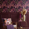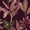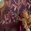 Indulge in a taste of the tropics with this majestic pink and green leaf wallpaper. Exuberant magenta-pink leaves with tones of olive green adorn a plum backdrop, creating an opulent paradise in your home. Paradiso in magenta is perfect for incorporating Pantone's 2023 colour of the year, Viva Magenta, into any space in your home!