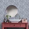 This arching art deco wallpaper adds depth and design to your space. In blueberry on white, this simplistic wallpaper can work in a number of spaces in your home, including a living room or bathroom.
