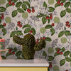 Nestled amongst the shady woodland clearings you'll find a little fuzzy treat in this Woodland Wild Strawberry wallpaper. This sweet pattern features hand drawn strawberries in bursting berry colours along with its deep sage green perennial woody leaves. Dancing among them are its sweet white flowers which bloom all summer long.